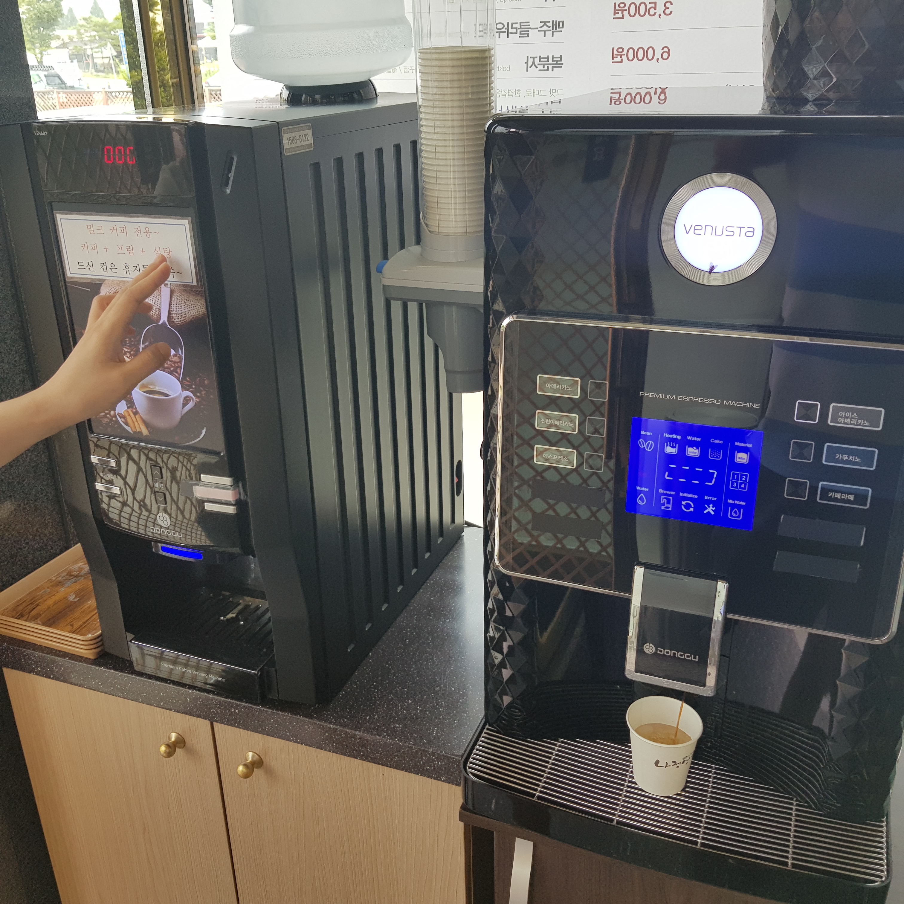 입구 쪽에는 밀크커피 자판기와 원두커피가 준비되어 있으니 식사 후 이용하시면 참 좋겠습니다.