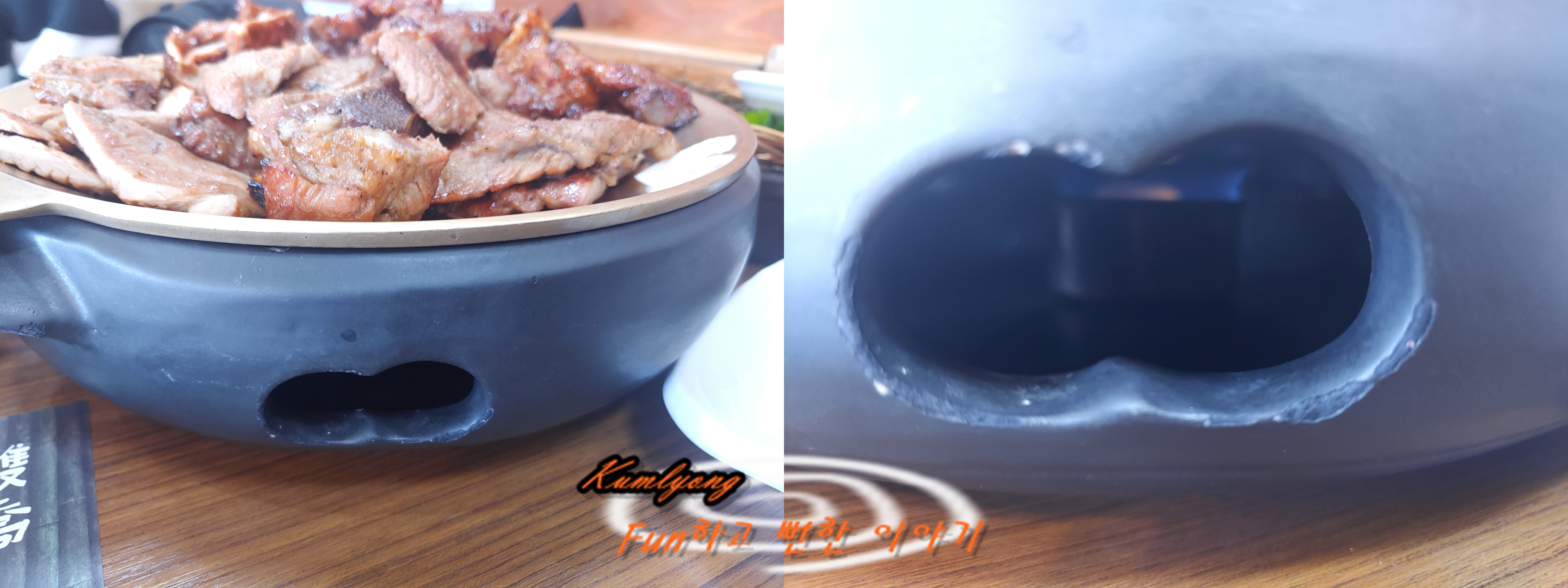 돼지갈비를 마지막까지 따뜻하게 먹을수 있도록 접시 하단에 고체연료에 불을 붙여 놓기 때문에