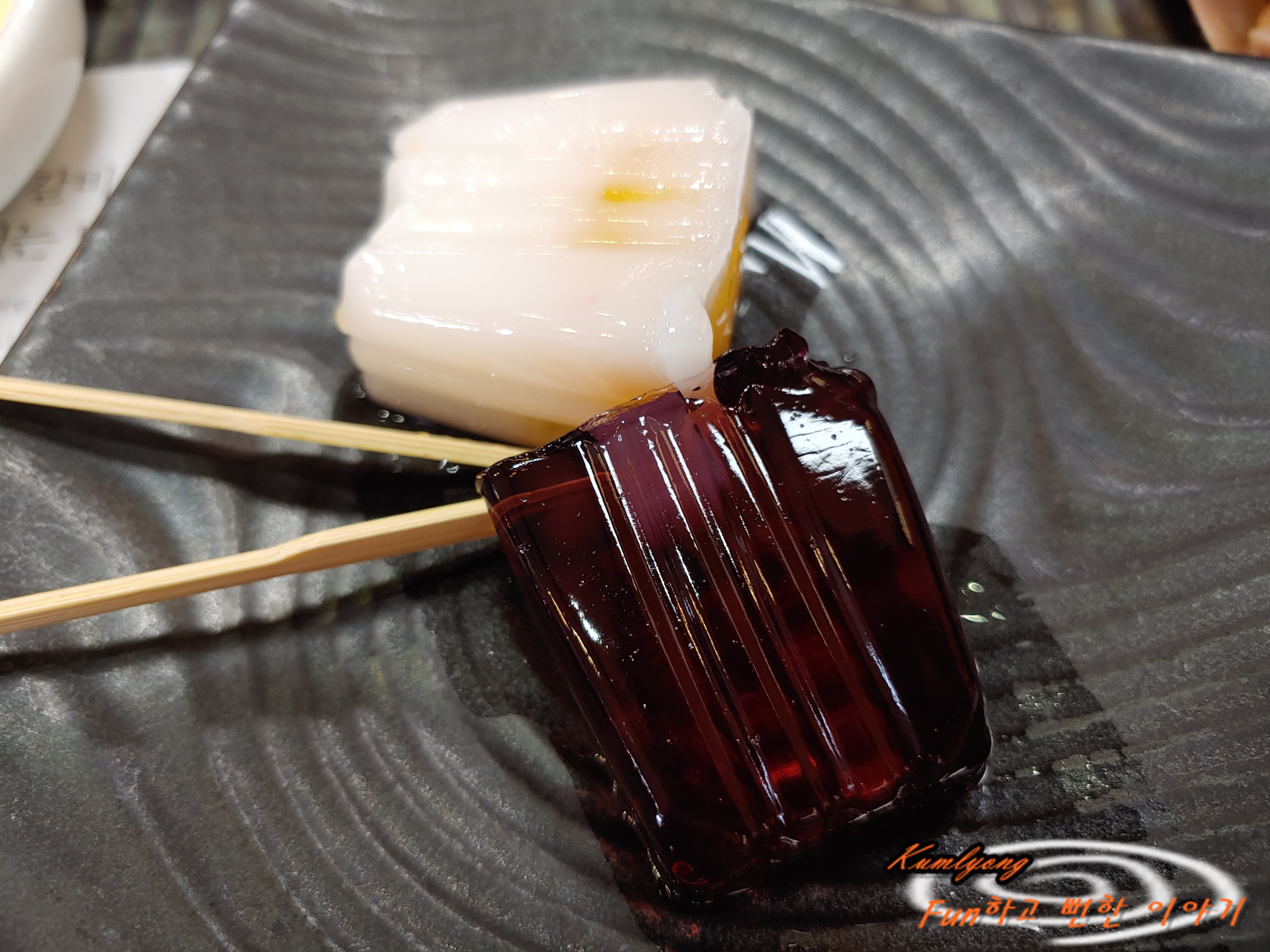 항상 여기올때면 고기에 집중하느라 식사류는 거의 먹지않고 갈비만 먹는데 식사가 끝났을때쯤 직원분이 젤리를 가져다준다.