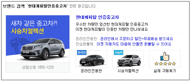 현대캐피탈 인증 중고차란5년 이내 10만 킬로 이내의 중고차를 매입하여 판매를 하는 방식으로 중고차리스 혹은 현대캐피탈 할부상품 그리고 현금 구매로 구매를 할 수 있게 되어 있었고 온라인샵과 오프라인 샵 두 가지를 운영하고 있었다