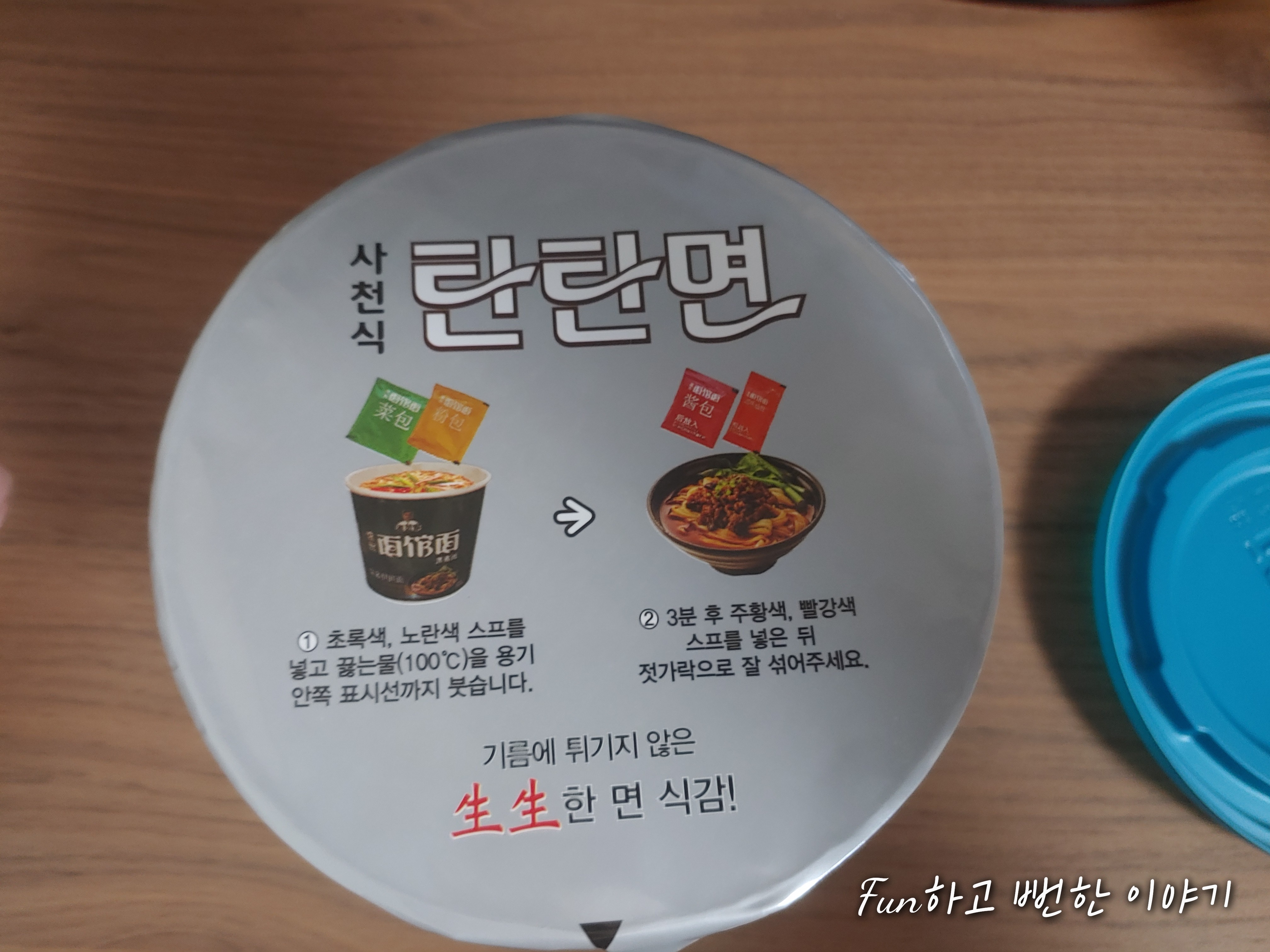 끓는물을 표시선까지 부어주고나서 3분이 지나면