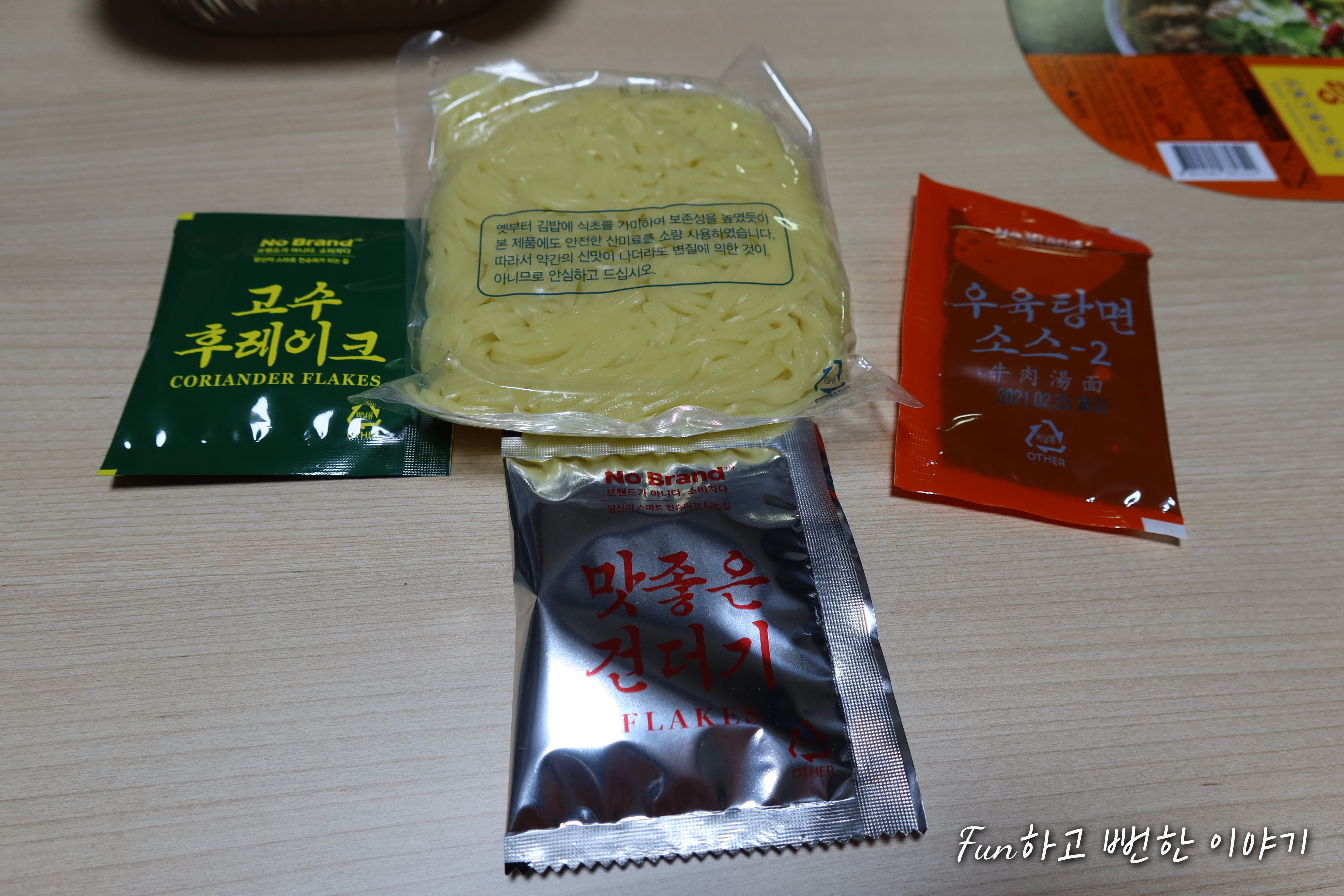 일반라면 칼로리가 400칼로리가 넘는걸 감안하면 상당히 착한 칼로리 아닐까 싶다.노브랜드 우육탕면의 조리시간은 단 2분... 빠르다 빨라...