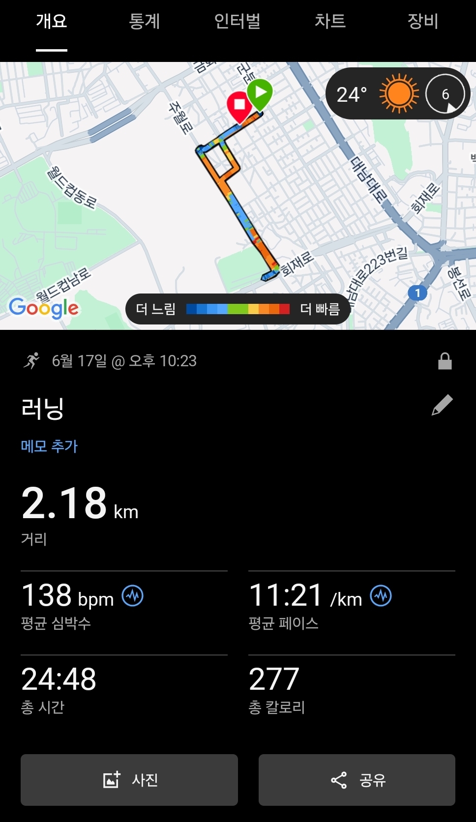 아무튼 장비빨이라고 샀던 가민 포러너 165의 셋팅이 잘못된건지 내 런닝 3일차 데이타는 이상해져버렸다.